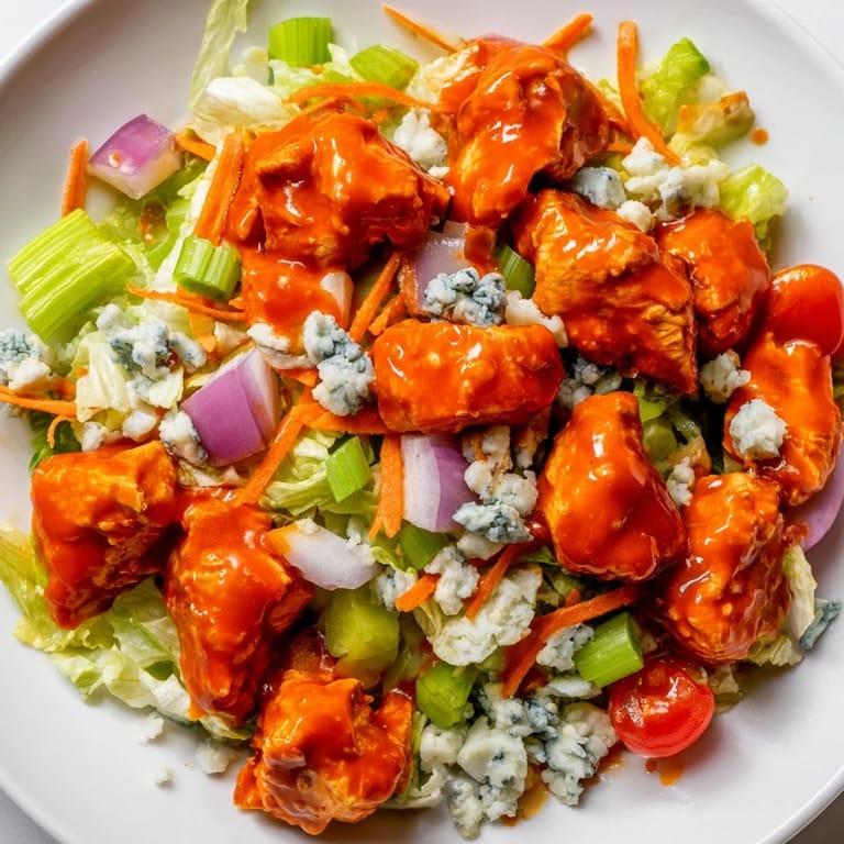 Save The first time I made this salad, I was trying to use up leftover chicken from a weekend cookout and ended up creating something my family now requests weekly. There is something about the cool crunch of romaine against spicy, buttery buffalo chicken that just works. My husband actually said this was the best salad he had ever eaten, which is high praise coming from someone who used to think salad was just rabbit food.