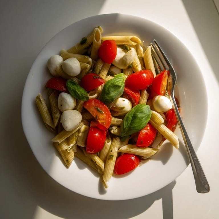Save I threw this together on a Tuesday night when the farmer's market tomatoes were too perfect to ignore and I had zero patience for anything complicated. The basil on my windowsill had gone wild, the mozzarella was already in the fridge, and I needed something that tasted like summer without turning on the oven. What came out of that bowl was so bright and easy that I've been making it ever since, sometimes for dinner parties, sometimes just for myself with a glass of cold wine. It's the kind of dish that makes you feel like you're doing something fancy when really, you're just tossing things in a bowl.