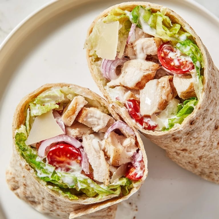- Slice each wrap in half diagonally and serve immediately while the chicken is still slightly warm. The temperature contrast is everything.