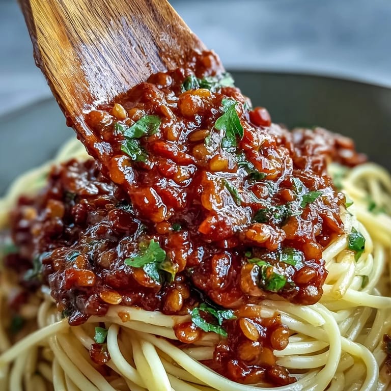 Save My sister called me one Tuesday afternoon, frustrated that her go-to pasta sauce felt too heavy for what she wanted to cook. We started playing around with lentils instead of meat, and honestly, I was skeptical at first—but something magical happened as that sauce simmered. The kitchen filled with this deep, comforting aroma that made me understand why she kept coming back to it. Now whenever I make this Lentil Bolognese, I think of that moment when a simple question turned into something we both love.