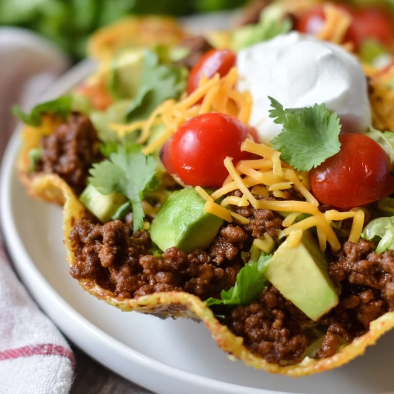Save The first time I made taco salad, my kitchen smelled like a taco truck had parked in my living room. My roommate walked in, nose first, and asked what restaurant I'd ordered from. When I pulled those crispy tortilla bowls out of the oven, still warm and golden, her eyes went wide. Now it's the meal I make when I want something that feels like party food but actually comes together on a random Tuesday night.