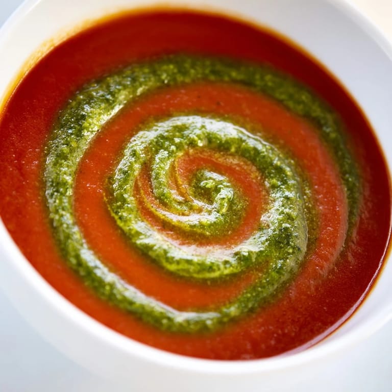 Save My kitchen smelled like a sunlit garden in Italy, though I was standing in my cramped apartment on a rainy Tuesday. The basil pesto I'd just whirred together clung to the spoon, bright green and almost too pretty to stir into anything. I ladled the tomato soup into mismatched bowls, drizzled the pesto on top, and watched it swirl into ribbons. That first spoonful made me forget about the weather entirely.