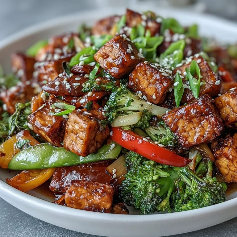 Save There's something about the sound of tempeh hitting hot oil that signals dinner is about to get interesting. I stumbled onto this stir-fry one Tuesday evening when I had a nearly empty fridge and a craving for something with real substance, and it became the dish I reach for whenever I need to prove that weeknight cooking doesn't have to feel rushed or complicated. The nutty tempeh soaks up all that savory sauce while the vegetables stay snappy, and somehow the whole thing comes together in less time than it takes to order takeout. It's become my go-to when friends drop by hungry, because it looks far more impressive than the effort involved.